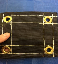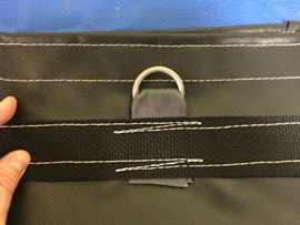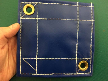 To reinforce grommets or D-rings, we sew 2” seatbelt webbing into every tarp around the fasteners prevent your tarp from fraying. Seatbelt webbing is not required, but if the tarp is going to be pulled often, seatbelt webbing is recommended to keep the fasteners in place on the tarp. If you do not desire seatbelt webbing, contact us or state so in your quote request.